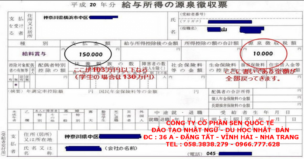 Để xin lại thuế thu nhập, thuế cư trú bạn phải chứng minh có gửi tiền chu cấp về cho gia đình. Nếu bạn ở Nhật thì có thể tự đứng tên mình nộp hồ sơ, nếu bạn đã về nước thì buộc phải nhờ cá nhân hoặc tổ chức tại Nhật thay bạn nộp hồ sơ và tiền thuế sẽ đựơc hoàn vào tài khoản họ.