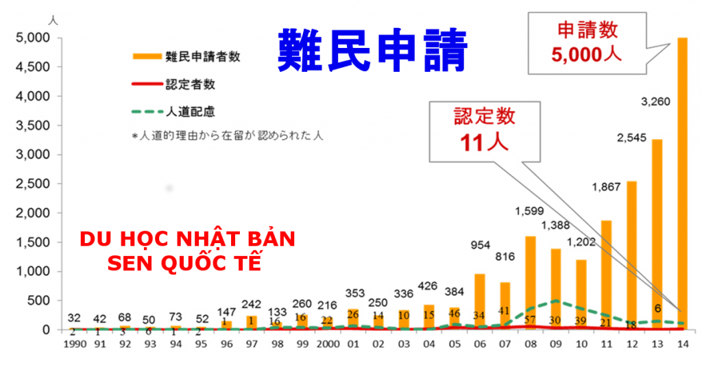 Theo thống kê Từ tháng 1 đến tháng 3 năm nay đã có 2356 người nước ngoài nộp đơn xin visa tị nạn ở Nhật Bản, đây là số người đăng ký xin Visa tị nạn nhiều nhất từ trước đến giờ, năm ngoái số người xin visa tị nạn chỉ có 7586 người, theo bộ ngoại vụ thì trung bình mỗi năm sẽ có khoảng gần 10 nghìn người xin tị nạn.